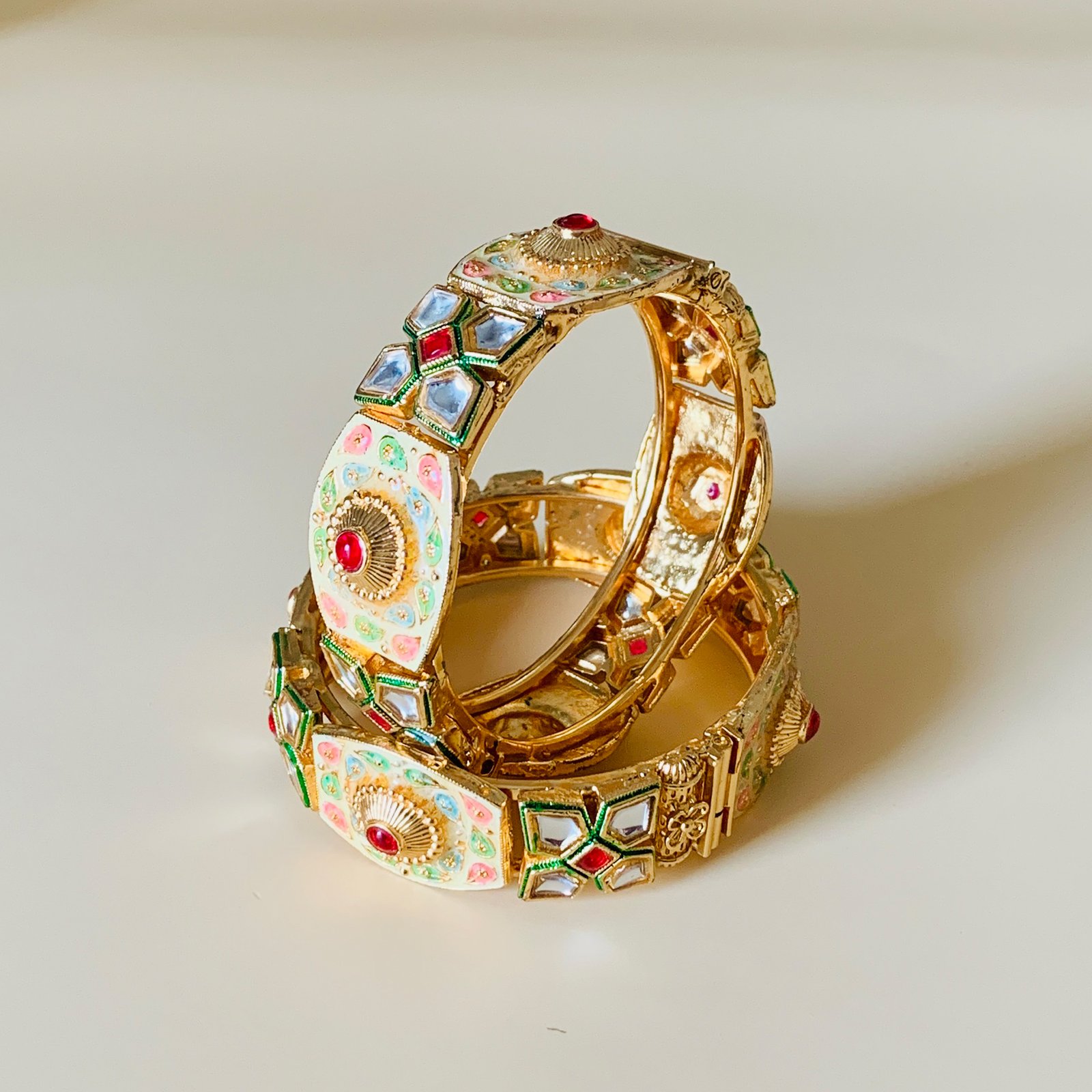 Gold Plated Imitation Kada Polki Enamel Royal Bangle Set